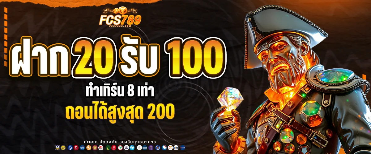ฝาก 20 → รับเพิ่ม 80 = รวม 100 / ทำเทิร์น 8 เท่า / ถอนได้สูงสุด 200