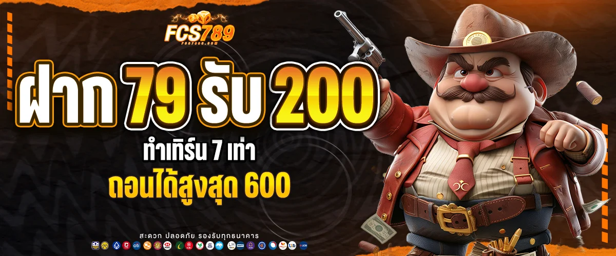 ฝาก 79 → รับเพิ่ม 121 = รวม 200 / ทำเทิร์น 7 เท่า / ถอนได้สูงสุด 600